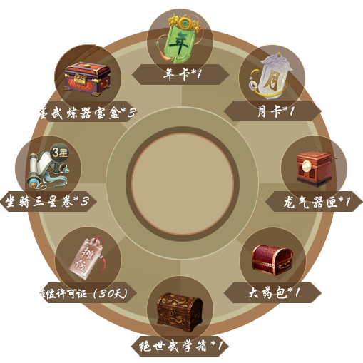 7、龙气器匣*1:开启后获得烈风刀、云绝剑、龙吟枪、崩山斧、斗龙甲、龙筋弓、飞甲刺其中一件。